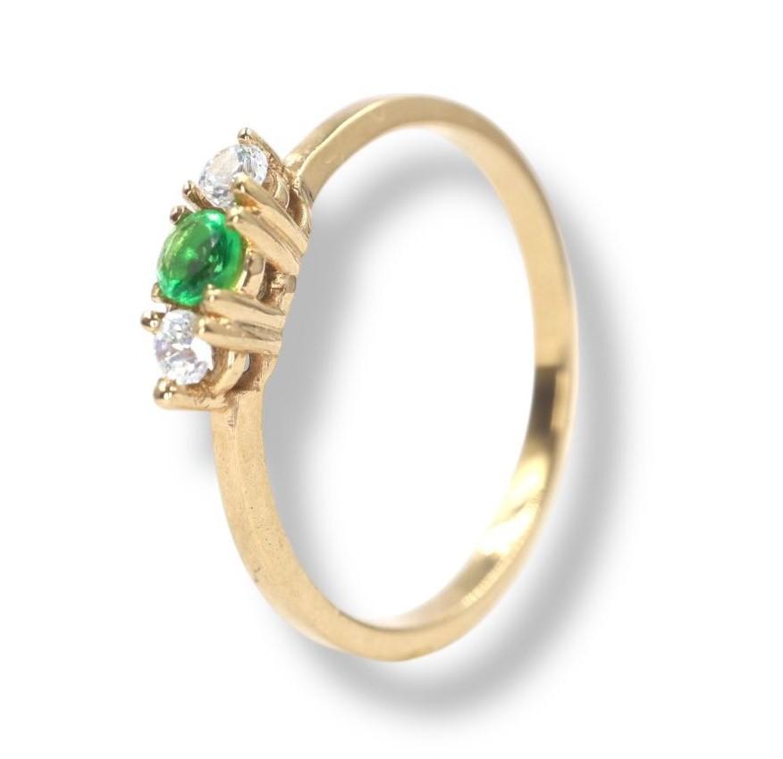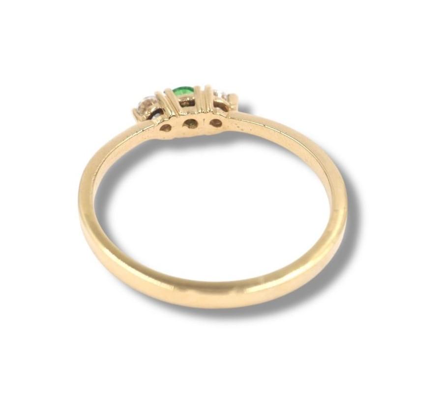 AnillosEste deslumbrante anillo combina la calidez atemporal del oro amarillo de 14K con la elegancia cl谩sica de las gemas preciosas. En el centro, una vibrante esmeralda de 2 mm captura todas las miradas con su intenso color verde, s铆mbolo de renovaci贸n y vitalidad. A cada lado, dos diamantes de 2 mm se complementan a la esmeralda, a帽adiendo un toque de sofisticaci贸n y un brillo inigualable.