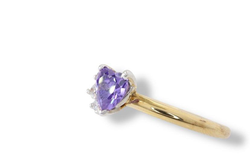AnillosAnillo "Corazón de Amor" en Oro Amarillo de 14K con Amatista y Diamantes