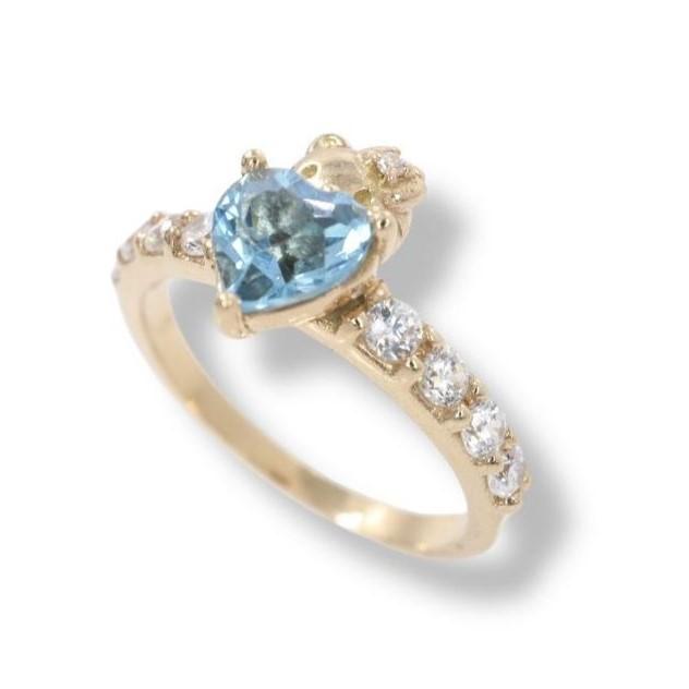 Anillo "Corazón de Kitty" en Oro Amarillo de 14K con Topacio Azul y Diamantes - 1 Topacio Azul en Corazon 5x6mm, 8 Diamantes 2mm, Oro Amarillo 14K