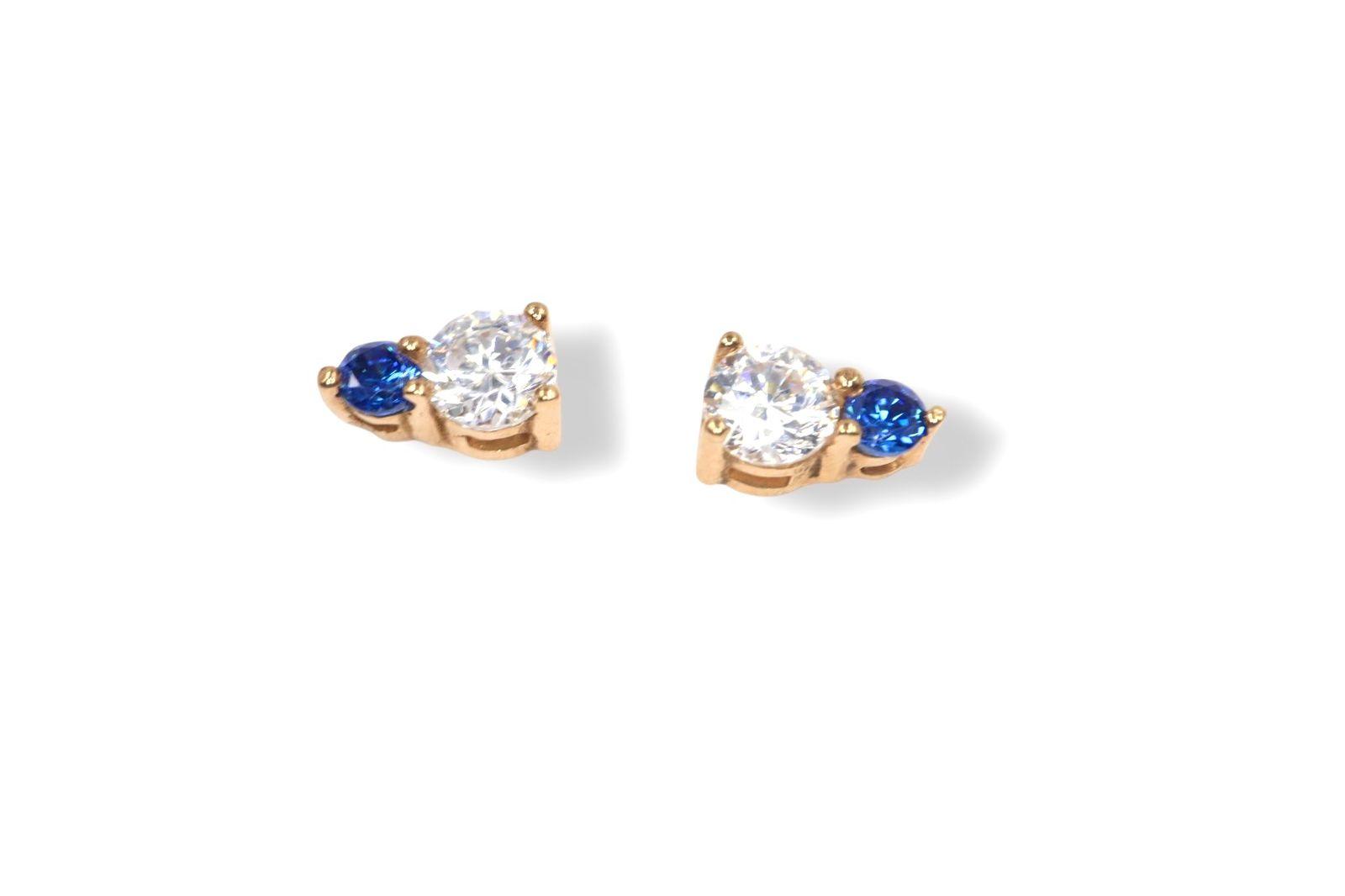 Cada arete presenta un radiante diamante de 3 mm en la parte inferior, su brillo puro y deslumbrante como la primera estrella de la noche. Sobre él, un zafiro de 2 mm, con su intenso color azul profundo, añade un toque de misterio y sofisticación, recordando la inmensidad del cielo nocturno. La disposición de las gemas, una sobre otra, crea una sensación de equilibrio y elegancia vertical que estiliza y atrae la mirada.