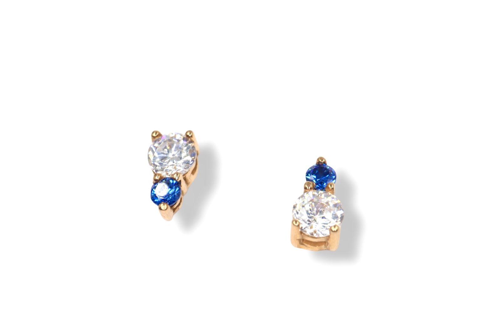Aretes "Dúo Celestial" en Oro Amarillo de 14K con Diamantes y Zafiros - 14K Oro Amarillo, 2 Diamante 3mm , 2 Zafiro 2mm
