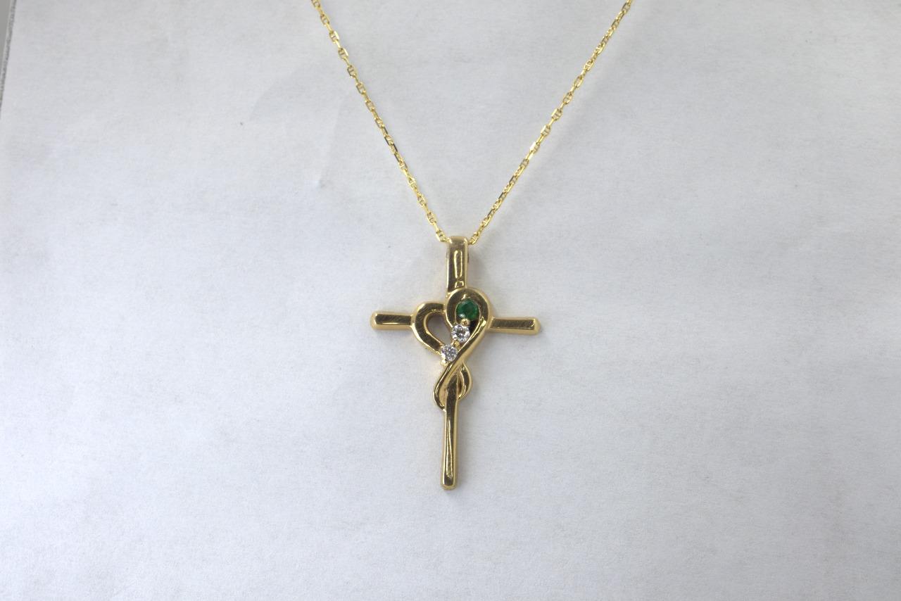 DijesDije de Cruz "Esperanza Eterna" en Oro Amarillo de 14K con Esmeralda y Diamantes