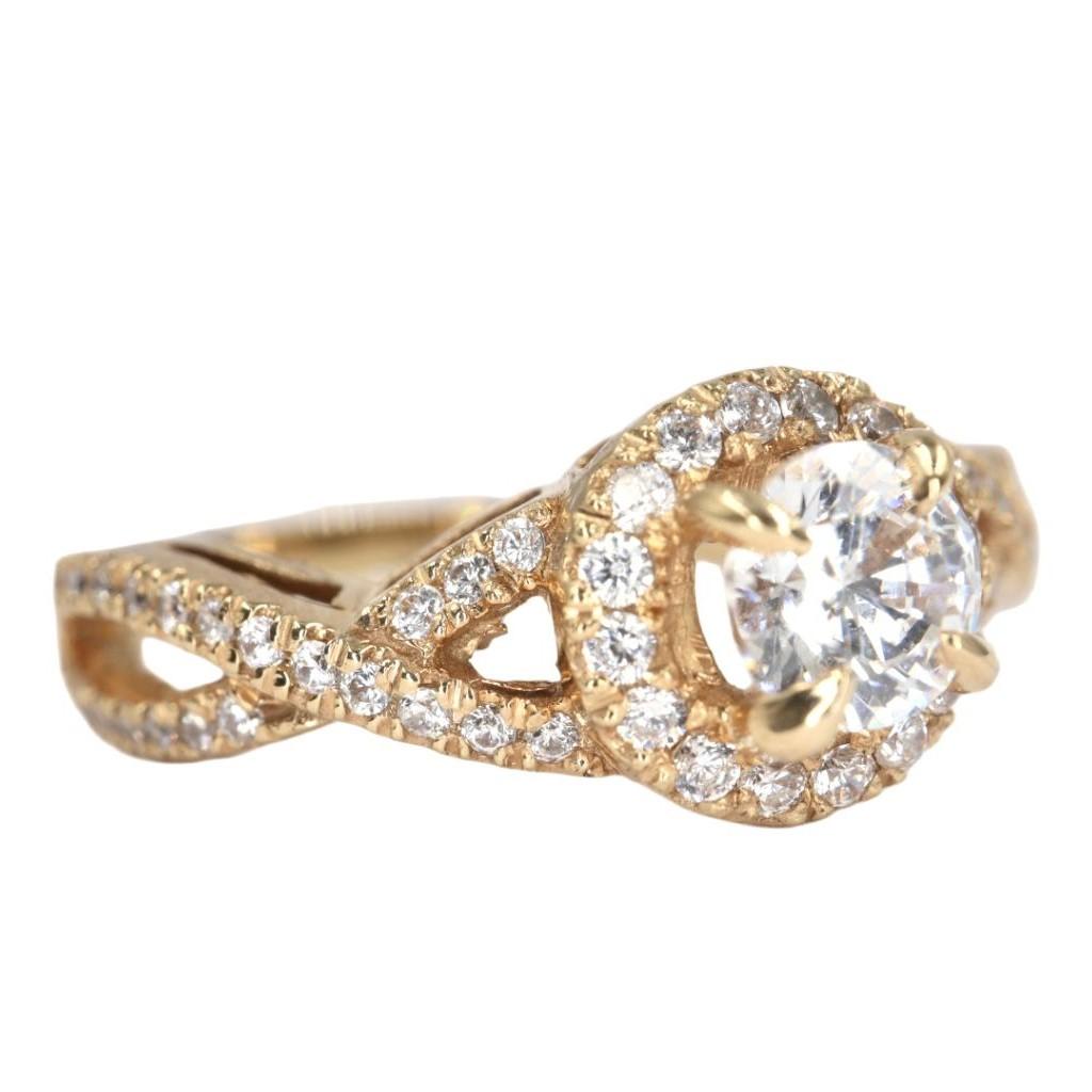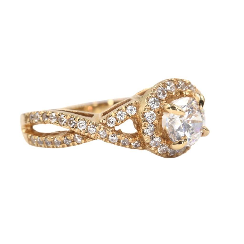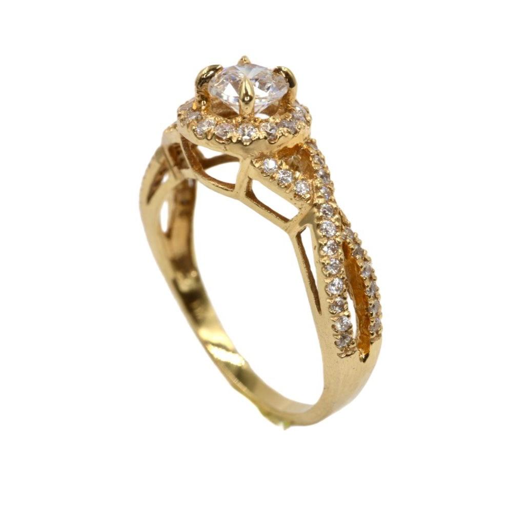 Este anillo es una obra maestra de brillo y sofisticaci贸n, dise帽ada para deslumbrar con su lujo y detalle. Elaborada en el resplandeciente oro amarillo de 14K, la pieza se centra en un magn铆fico diamante central de 5 mm, que irradia una luz excepcional y una claridad inigualable.