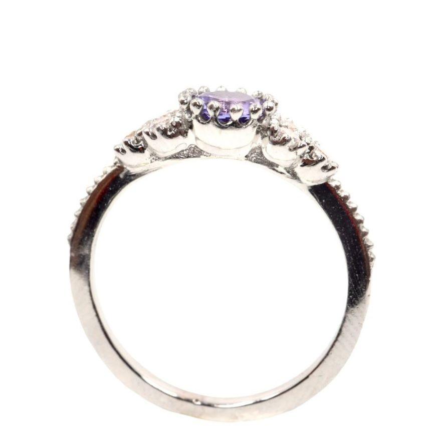 Descubre la belleza ex贸tica y el lujo sin igual con este deslumbrante anillo, una joya que captura los tonos 煤nicos del cielo africano al amanecer. Elaborado en el c贸modo oro blanco de 14K, el dise帽o se centra en una magn铆fica tanzanita de 5 mm. Su color vibrante, que oscila entre un azul intenso y un violeta cautivador, la convierte en una de las gemas m谩s deseadas del mundo.