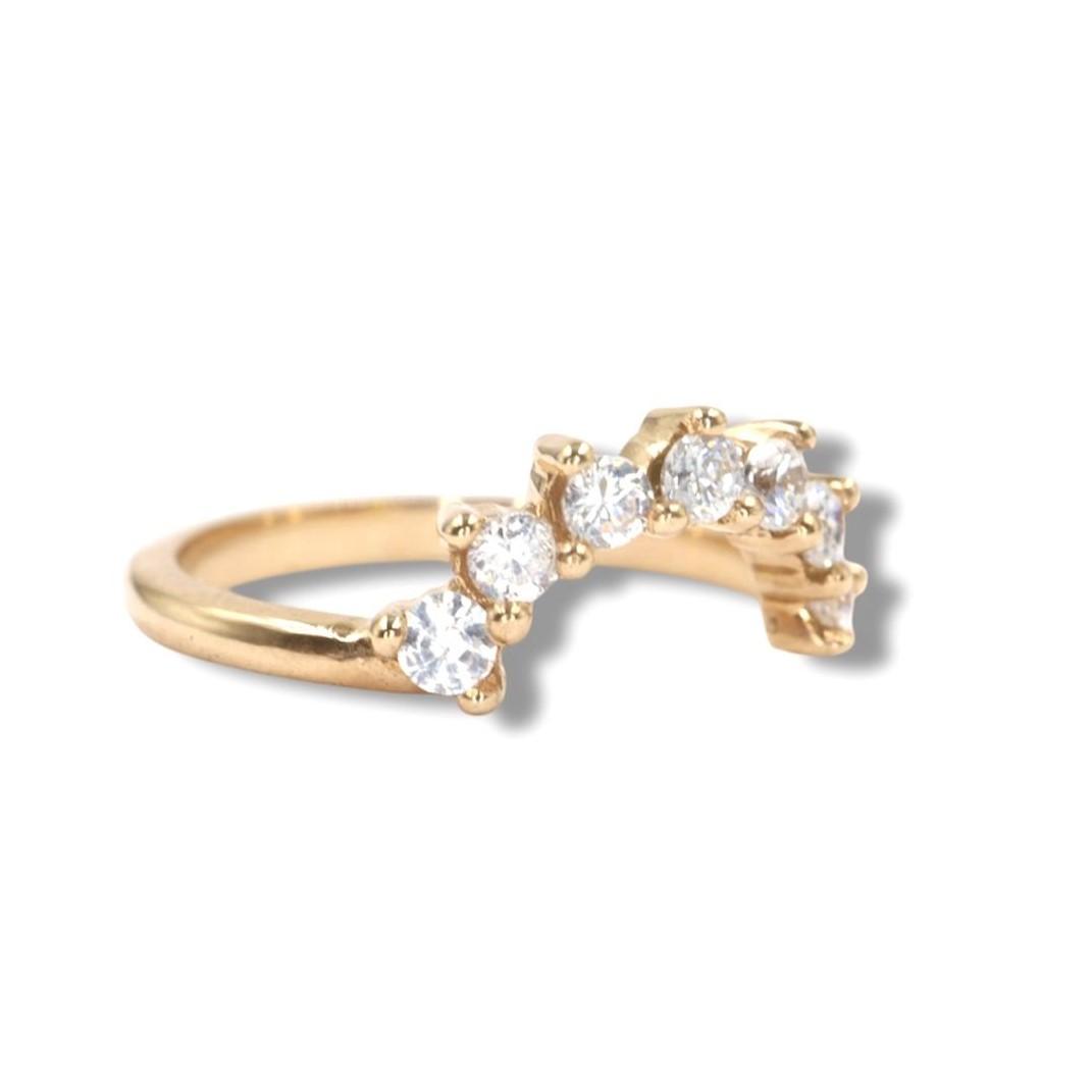 Anillo "Arco del Destino" en Oro Amarillo de 14K con Diamantes - 7 Diamantes de 2mm, Oro Amarillo 14K