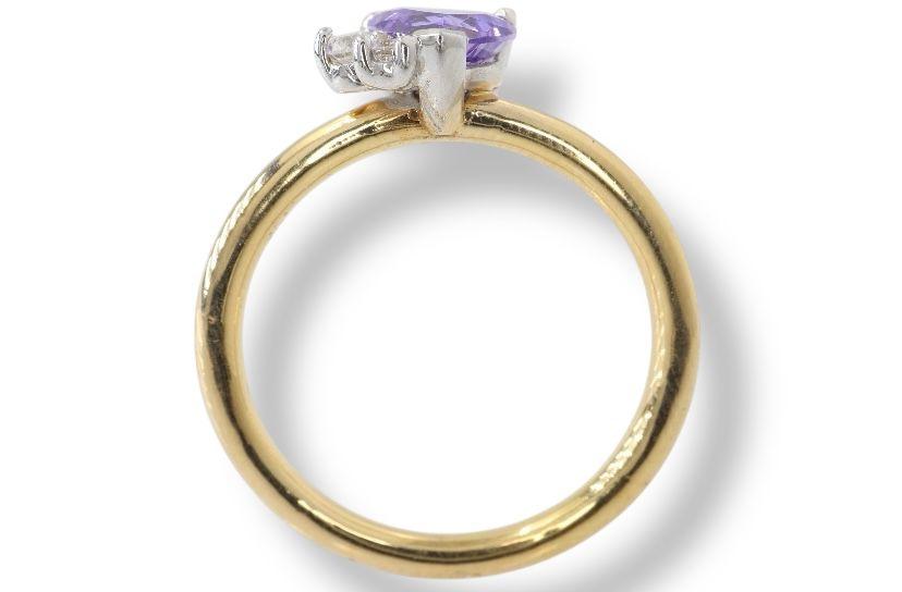 AnillosAnillo "Corazón de Amor" en Oro Amarillo de 14K con Amatista y Diamantes