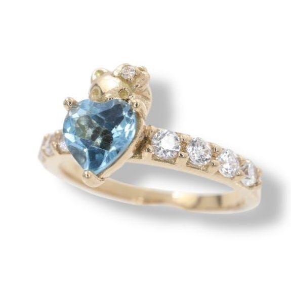 AnillosAnillo "Corazón de Kitty" en Oro Amarillo de 14K con Topacio Azul y Diamantes
