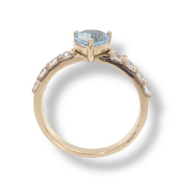 Anillo "Corazón de Kitty" en Oro Amarillo de 14K con Topacio Azul y Diamantes - 1 Topacio Azul en Corazon 5x6mm, 8 Diamantes 2mm, Oro Amarillo 14K