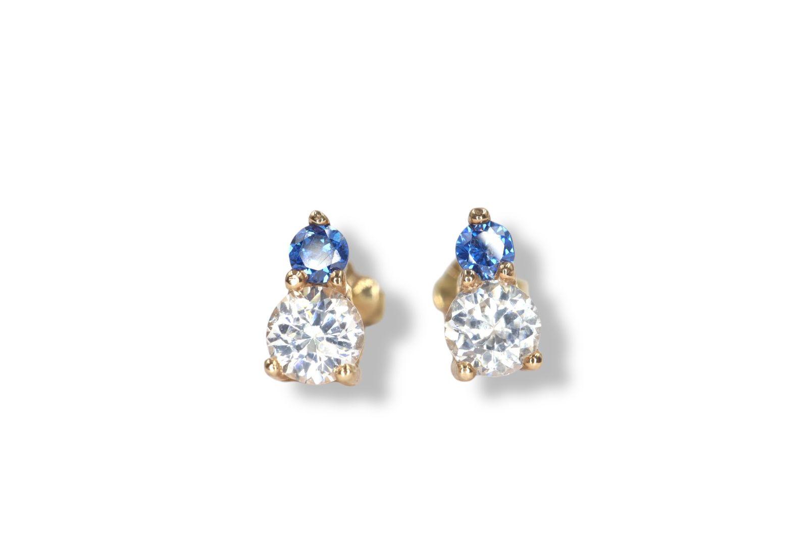 Aretes "Dúo Celestial" en Oro Amarillo de 14K con Diamantes y Zafiros - 14K Oro Amarillo, 2 Diamante 3mm , 2 Zafiro 2mm