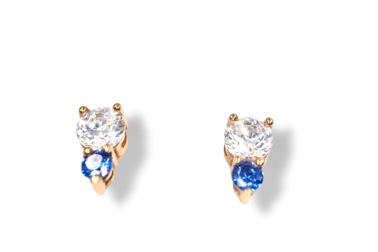 Cada arete presenta un radiante diamante de 3 mm en la parte inferior, su brillo puro y deslumbrante como la primera estrella de la noche. Sobre él, un zafiro de 2 mm, con su intenso color azul profundo, añade un toque de misterio y sofisticación, recordando la inmensidad del cielo nocturno. La disposición de las gemas, una sobre otra, crea una sensación de equilibrio y elegancia vertical que estiliza y atrae la mirada.