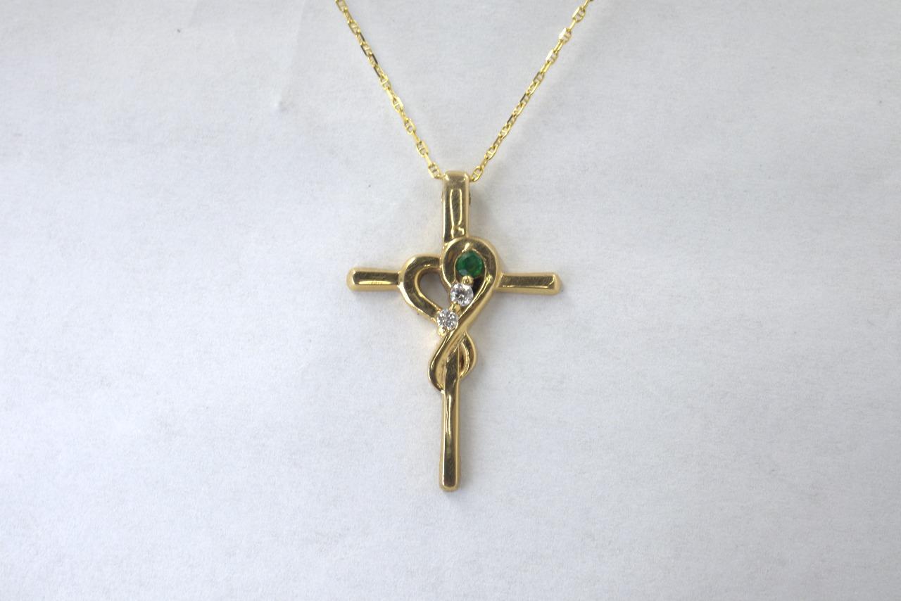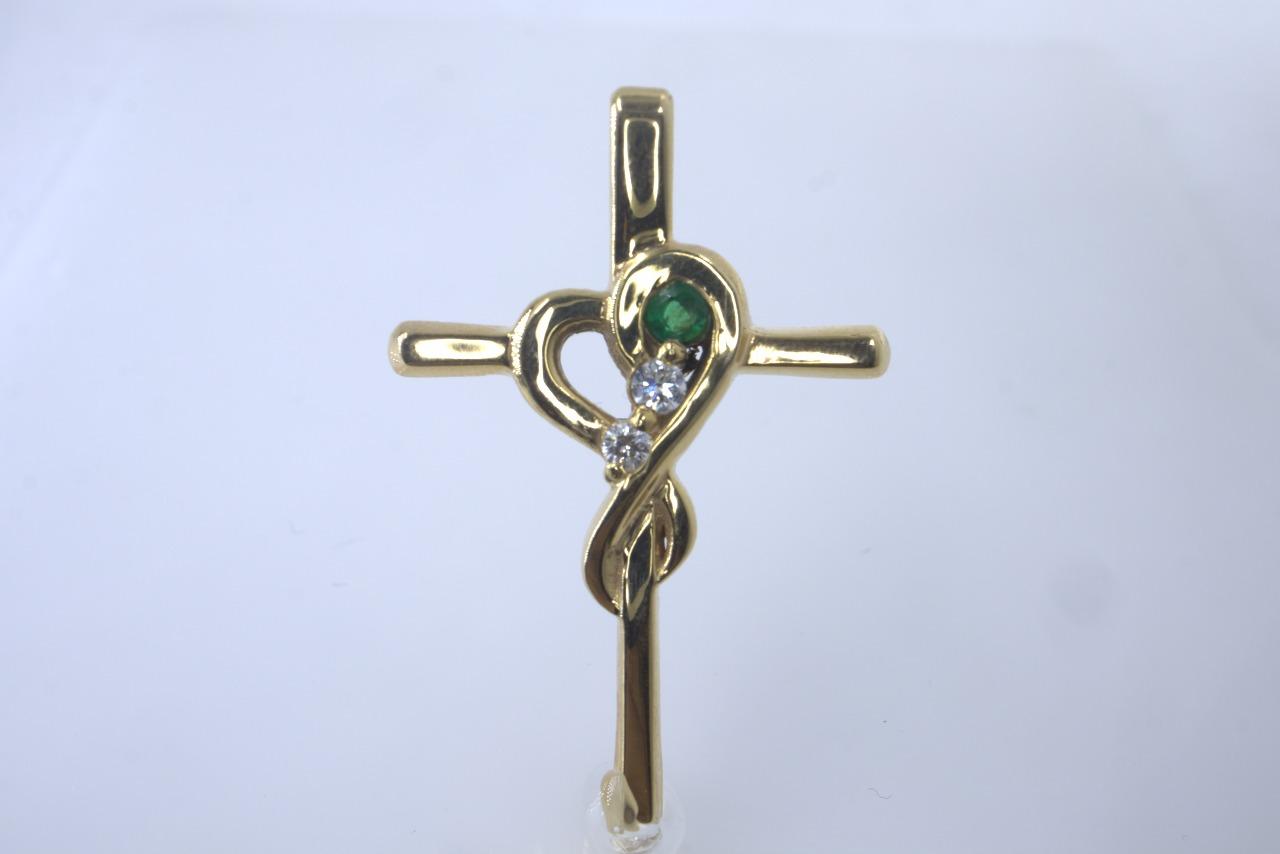 DijesDije de Cruz "Esperanza Eterna" en Oro Amarillo de 14K con Esmeralda y Diamantes