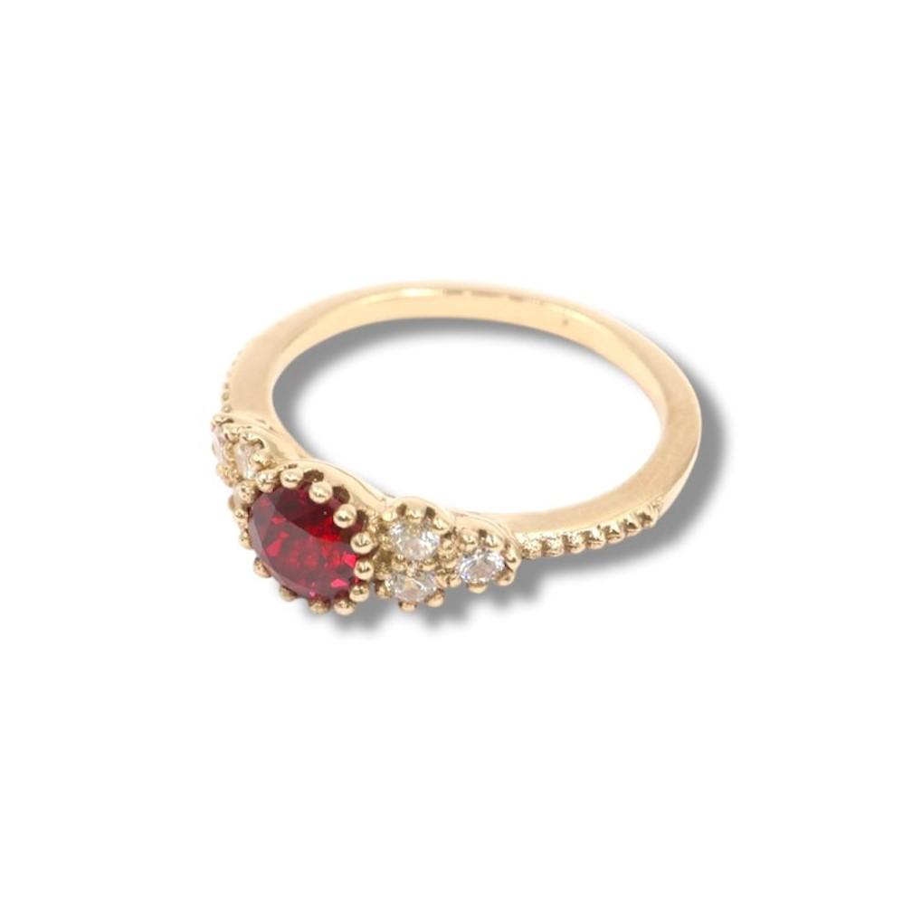 Este anillo, con su combinación clásica de rubí y diamantes, es la elección perfecta para un compromiso, un aniversario o como un regalo memorable. Una alegría que captura la luz y el corazón, destinada a ser atesorada por siempre.
