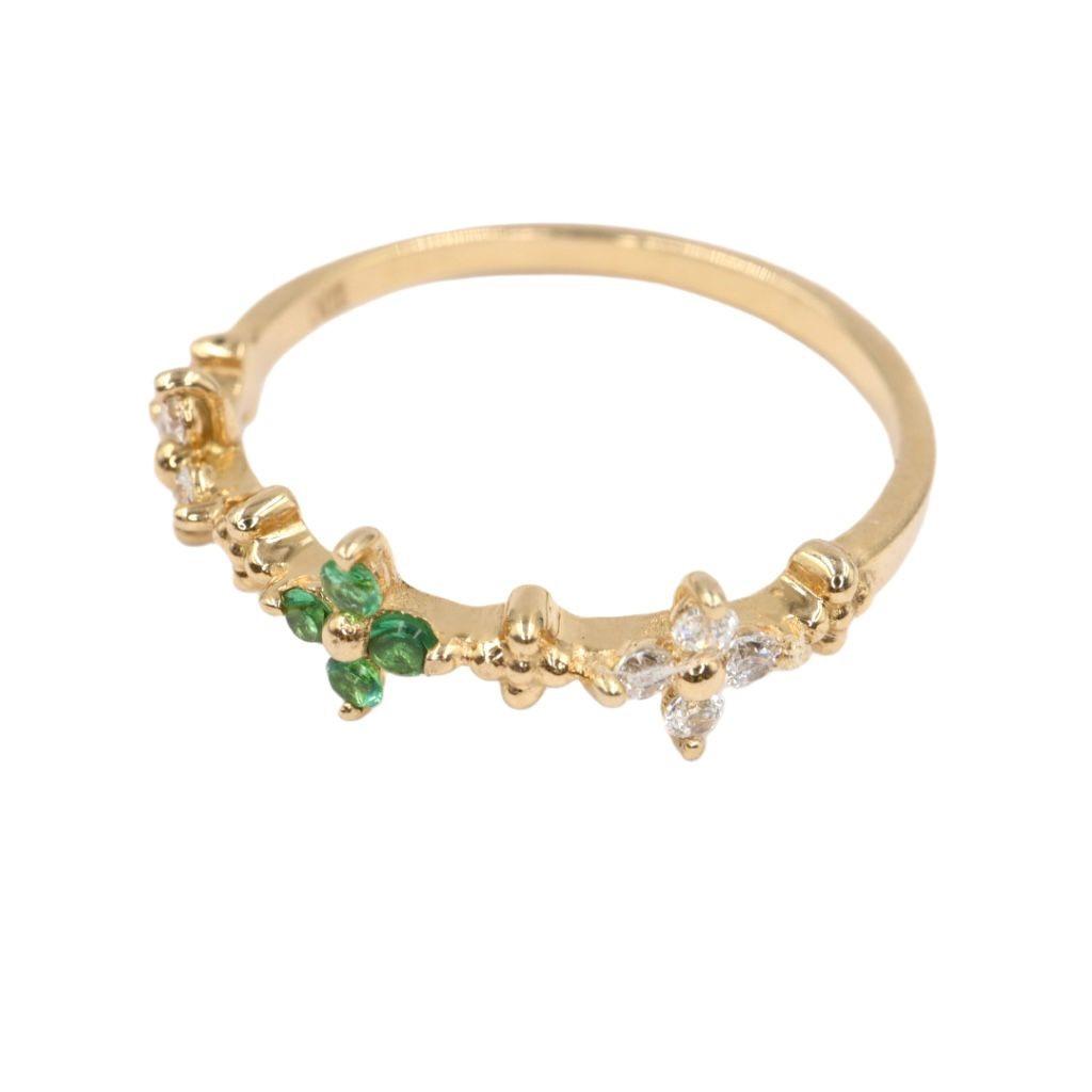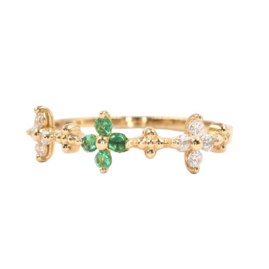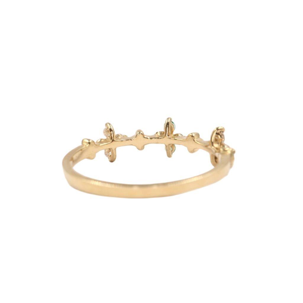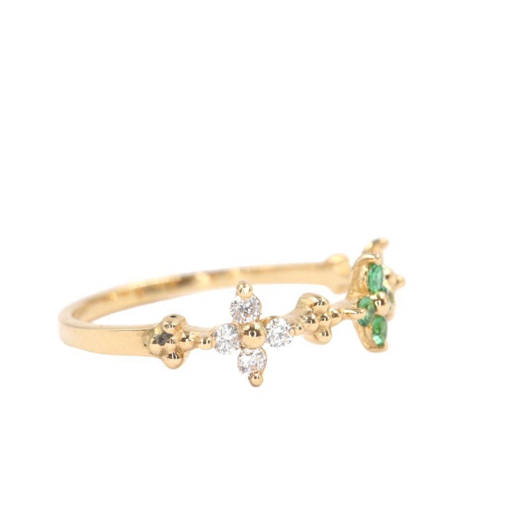 Anillo "Lazo de Amor" en Oro Amarillo de 14K con Esmeraldas y Diamantes - 4 Esmeraldas 1mm, 8 Diamante 1mm, Oro Amarillo 14K