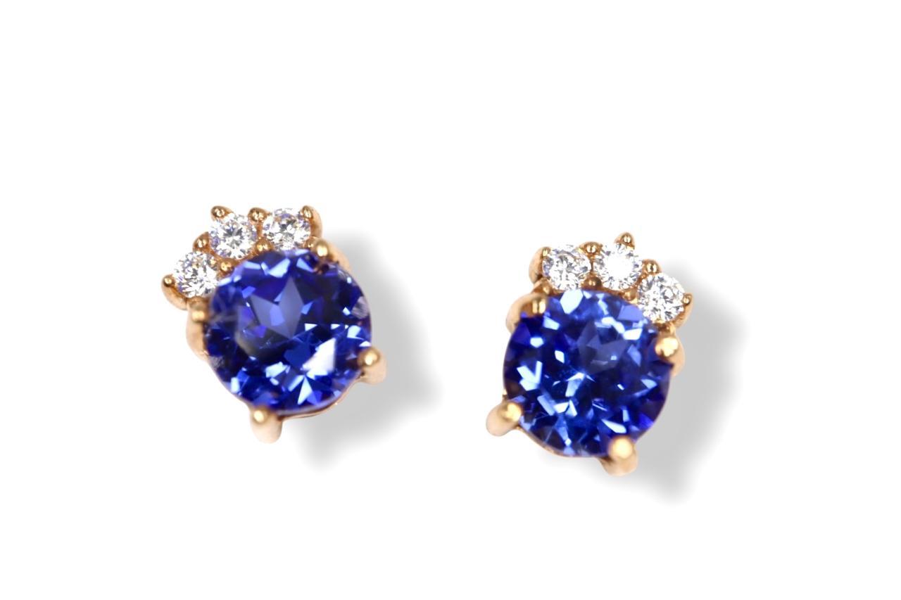Aretes "Ojos del Cielo" en Oro Amarillo de 14K con Zafiros y Diamantes - 14K Oro Amarillo, 2 Zafiros 5mm, 6 Diamante 1mm