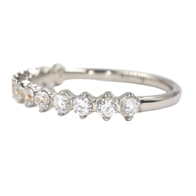 La banda est谩 exquisitamente adornada con una hilera de 13 Diamantes de 2 mm, engastadas a la perfecci贸n para maximizar su resplandor. Cada diamante ha sido seleccionado por su claridad y brillo excepcionales, creando un camino de luz deslumbrante que rodea la mitad del dedo.