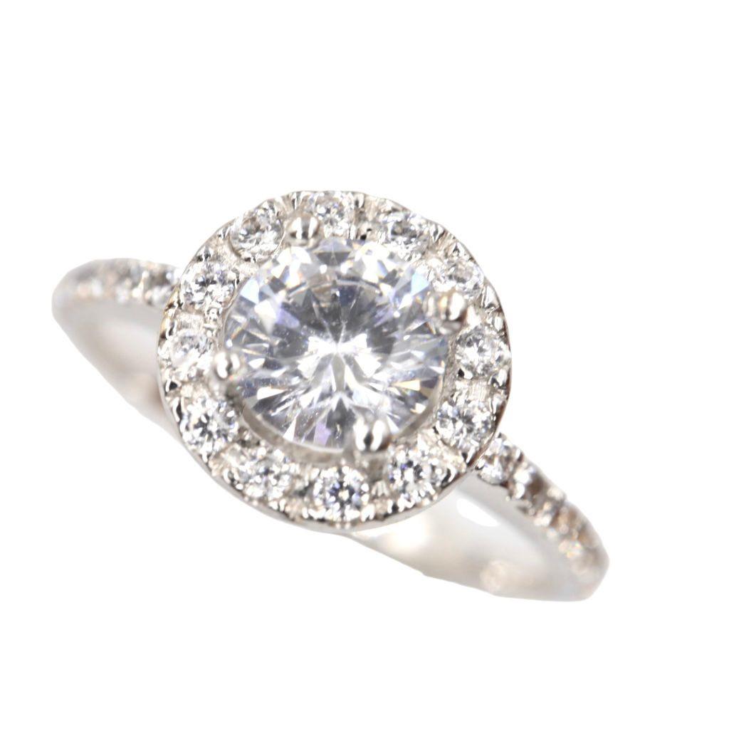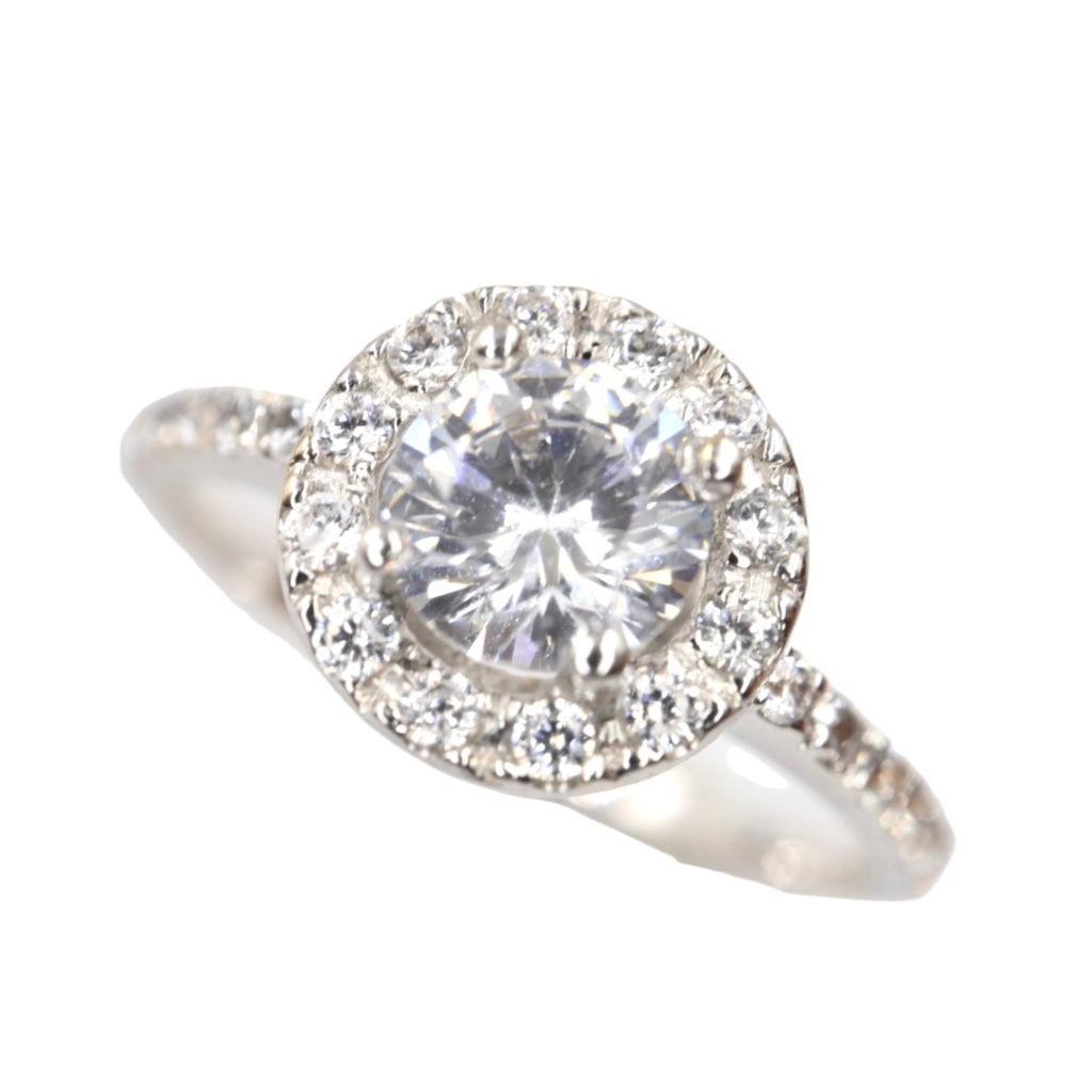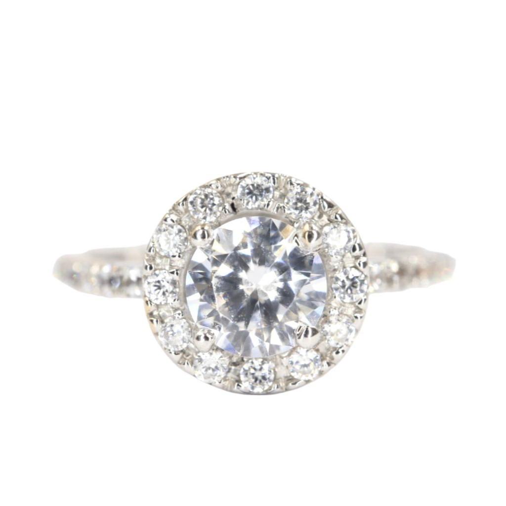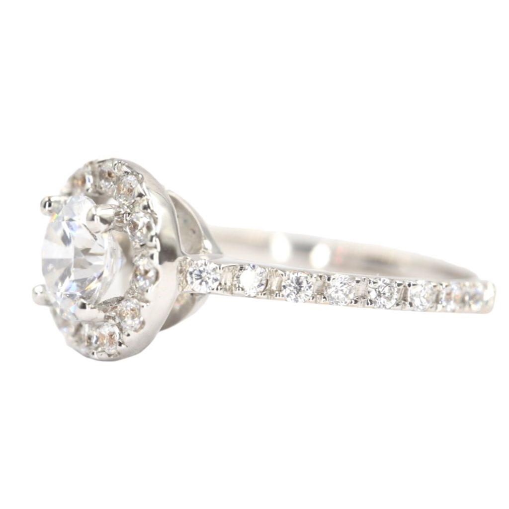 Anillo "Promesa Eterna" en Oro Blanco de 14K con Diamantes - 1 Diamante Central 5mm, 12 Diamantes 1mm, 16 Diamantes .5mm, Oro Blanco 14K