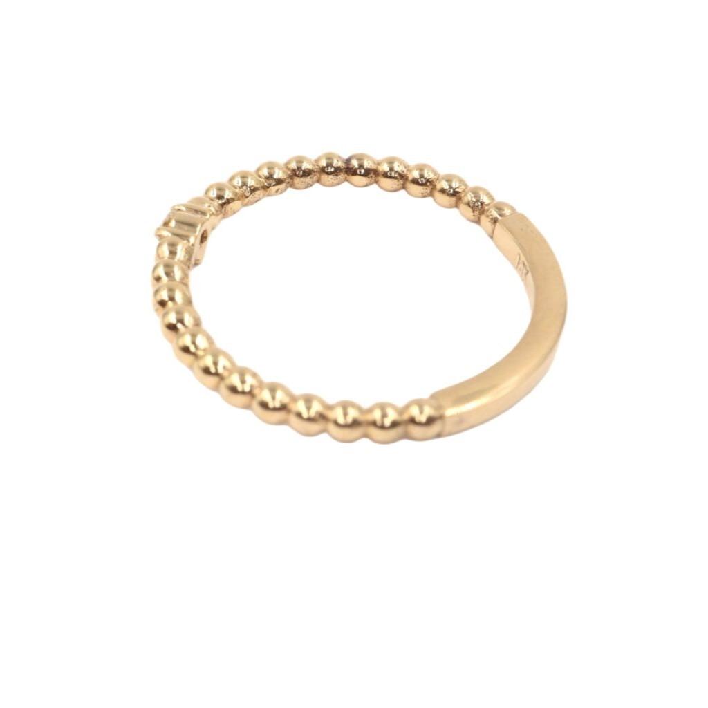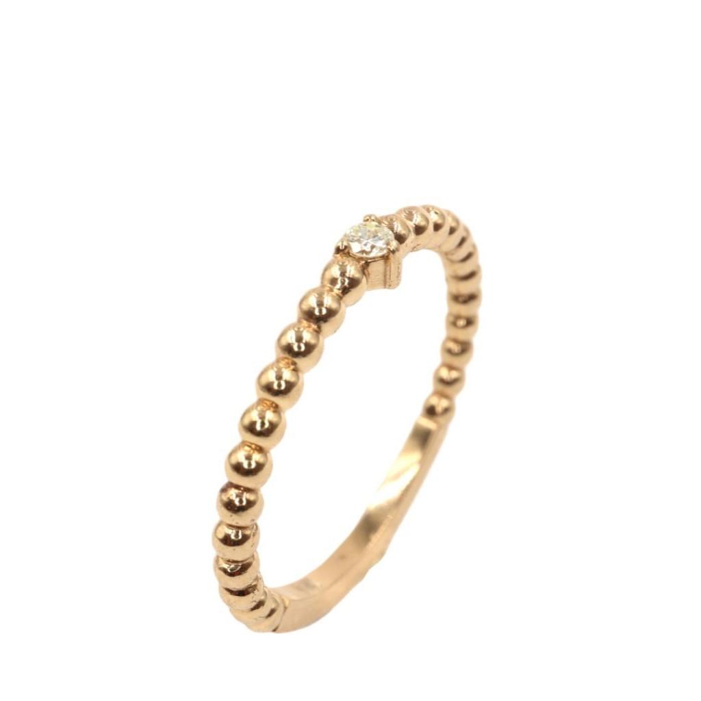 En un extremo de la banda, un diamante de 2 mm captura la luz y la imaginaci贸n, sirviendo como el punto focal de la pieza. Su resplandor puro contrasta a la perfecci贸n con la calidez del oro, creando un equilibrio armonioso entre la simplicidad y el lujo.