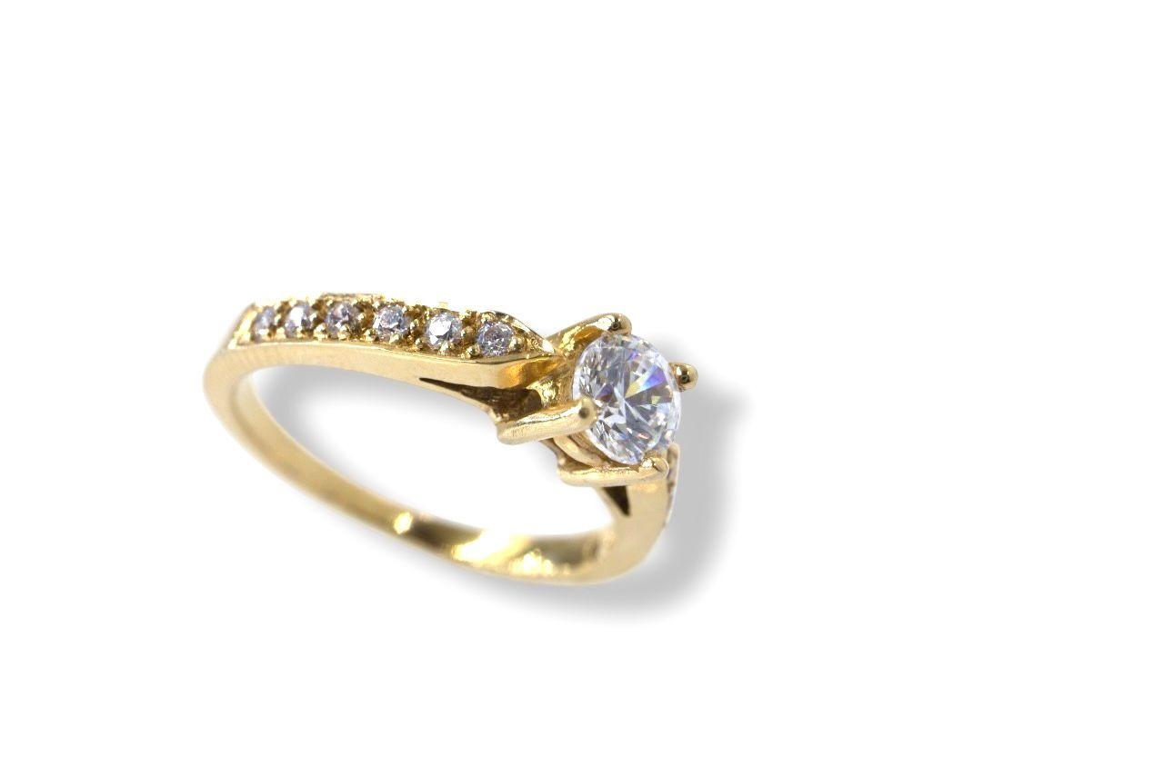 "Anillo ""Resplandor Clásico"" en Oro Amarillo de 14K con Diamantes Este anillo es la definición de la elegancia atemporal, una pieza que combina un diseño clásico con un brillo excepcional. Elaborada en oro amarillo de 14K de la más alta calidad, la joya se centra en un deslumbrante brillo de 5 mm, que se eleva sobre la banda para capturar y reflejar la luz desde todos los ángulos. La banda, con su diseño de doble vástago que se divide y se entrelaza delicadamente, está adornada con un pavé de 12 Diamantes de 1 mm. Estas gemas diminutas enmarcan la piedra central con un resplandor continuo, creando una sinfonía de luz que atraerá todas las miradas. Es el anillo de compromiso ideal o un regalo perfecto para celebrar un hito importante. Una pieza sofisticada y versátil que perdurará como un símbolo de amor y belleza."