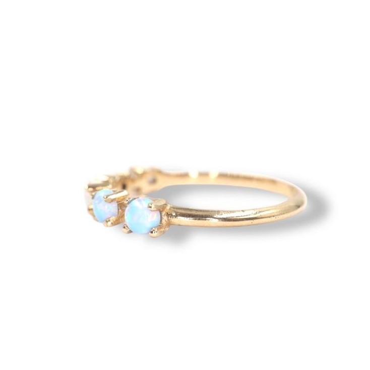 Anillo "Susurros de la Luna" en Oro Amarillo de 14K con Ópalos Capuchón - 5 Opalos Capuchon 3mm, Oro Amarillo 14K